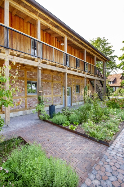 Auf die vollständige Modernisierung folgte der Wunsch, mehr Zimmer bieten zu können. Denn die überaus beliebten drei Tagungshäuser ermöglichen Veranstaltungen für bis zu 60 Personen, während in den ursprünglichen zwei Zimmerhäuser nur 18 Unterbringungen erlaubten. Dieser Wunsch ging nun in Erfüllung – mit zwei Neubauten, die das Gebäudeensemble des Biohotels ergänzen.