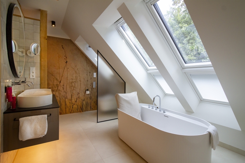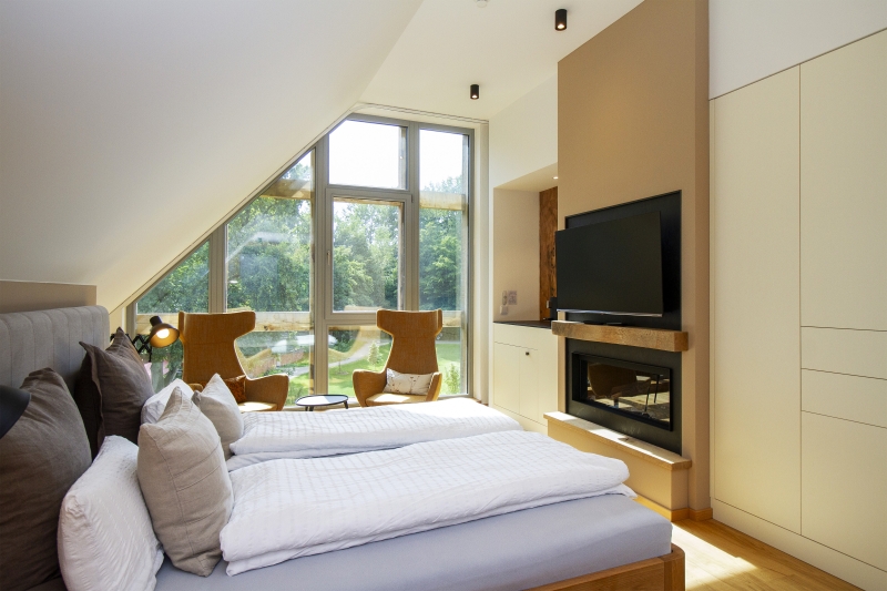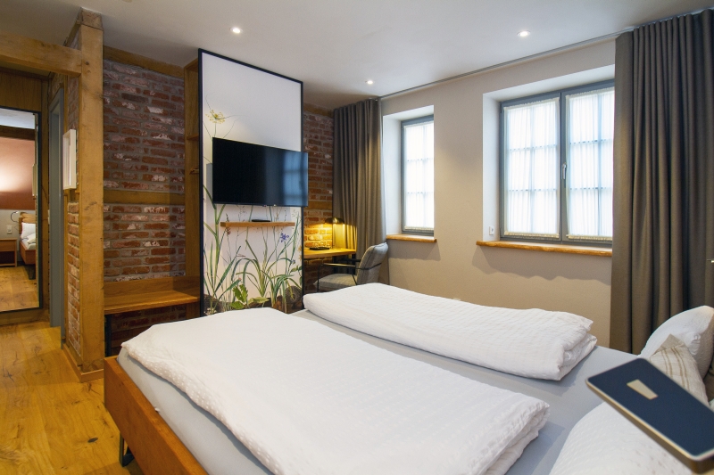 Die Gebäude fügen sich optisch perfekt ins Fachwerkpanorama ein und erfüllen jeweils eigene Ansprüche. Der „Speicher“ erweitert vor allem das Angebot für Tagungsgäste: mit modernen Zimmern nahezu gleichen Zuschnitts und gleicher Ausstattung, die aus Hotelperspektive besonders effizient zu bewirtschaften sind. Für VIP-Teilnehmende stehen hier außerdem zwei neue Deluxe-Zimmer zur Verfügung.