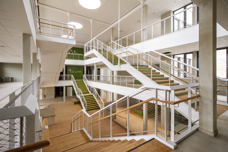 Entstanden ist allerdings viel mehr als eine „umgezogene Schule“. Unter enger Einbeziehung der Schulleitung, der Lehrkräfte, der Schülerinnen und Schüler sowie der Eltern reifte das Konzept eines modernen Bildungs-Campus heran, inklusive individueller Flächen für zeitgemäß pädagogische Unterrichtsgestaltung.
