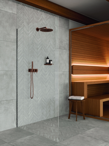 Eine reduzierte Farbpalette mit grauen, schwarzen und weißen Grundtönen kennzeichnet den urbanen Loft-Stil. Fliesen in Beton- oder Estrichoptik greifen den Industriecharakter auf, der sich mit Elementen wie freiliegenden Rohren und metallischen Accessoires unterstützen lässt. Dabei ist die keramische Oberfläche im Unterschied zu gegossenen Bodenflächen nicht anfällig für Risse oder Flecken. Einen gestalterischen Gegenpol bietet Holz. Dessen natürlicher Look wird auch im Bad immer beliebter, denn er schafft eine wunderbar wohnliche Atmosphäre. Dabei entscheiden sich die meisten Bauherren für keramische Holzoptiken. Die aktuellen Holzdekore sehen nicht nur täuschend echt aus, sie fühlen sich mit plastisch gemaserten Oberflächen auch so an. Damit lässt sich ein authentisches Holzfeeling ins Bad holen, ohne Kompromisse bei der Reinigung und Langlebigkeit einzugehen. Um das "Natur-Bad" noch entspannender zu gestalten, empfiehlt sich der Einsatz einer dezenten indirekten Beleuchtung.