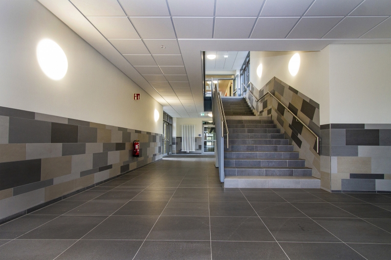 Insgesamt ist eine zusätzliche Fläche von rund 1.400 Quadratmetern geschaffen worden. Im Erdgeschoss des neuen Trakts befinden sich fünf allgemeine Unterrichtsräume und zwei Fachunterrichtsräume für Kunst und Musik, außerdem Lagerräume und ein Hausmeisterraum. Im Obergeschoss ist ein weiterer Fachunterrichtsraum für Chemie mit angrenzendem Vorbereitungsraum entstanden, darüber hinaus fünf allgemeine Unterrichtsräume und die WC-Anlage.
