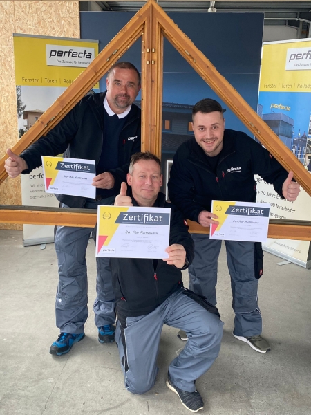 Fenster sind hierbei ein wichtiger Faktor, denn über alte, undichte Fenster entweichen im Schnitt bis zu 45 % der Heizwärme. Fensterlösungen von perfecta senken den Energiebedarf von Gebäuden sowie den CO2-Ausstoß und ermöglichen bis zu 20 % Einsparpotenzial bei den Heizkosten. Sie sorgen für eine effektive Wärmeisolierung und können dank ihres hohen g-Wertes (Gesamtenergiedurchlassgrad) sogar einfallendes Sonnenlicht für eine passive Energiegewinnung nutzbar machen. Häuslebauer und Renovierer müssen sich jedoch nicht nur auf die Qualität der verwendeten Produkte, sondern auch auf das Know-how der Fachfirmen zu 100 % verlassen können. Mit dem patentierten und bewährten Montagesystem „Fensterwechsel ohne Dreck“ bieten die Profis von perfecta ein gelungenes Rundum-sorglos-Paket mit echtem Mehrwert an. Von der Beratung über den Kauf bis hin zur Montage erhalten Bauherren mit individuell auf Maß gefertigten Produkten alles aus einer Hand. Der Austausch geht komplett ohne Ausbrucharbeiten am Mauerwerk vonstatten und lässt Tapeten und Bodenbeläge unberührt. Damit jede Montage absolut sicher, sauber und effizient erfolgen kann, bildet perfecta am Hauptsitz in Westendorf sämtliche Fenster- und Türenmonteure zu bestens geschulten perfecta Montageprofis weiter. Im Rahmen der theoretischen sowie praktischen Prüfungen verschmelzen langjährige Tradition und zukunftsorientierte Lösungsstrategien zu einem überzeugenden Gesamtpaket und bereiten die Monteure optimal auf jede noch so individuelle Einbausituation vor. Dabei stets im Fokus: Zufriedene Kunden, die von Service und Leistung profitieren und in perfecta einen Partner haben, der ihr Bauvorhaben zuverlässig und professionell realisiert. Übrigens: perfecta achtet auch bei Produktionsbedingungen auf Nachhaltigkeit, Energieeffizienz und die Schonung wertvoller Ressourcen.