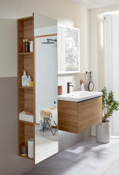 (epr) Im Badezimmer häuft sich im Laufe der Zeit ein ganzes Sammelsurium an Utensilien für die tägliche Beauty-Routine an. Kommen innovative Badmöbel von Villeroy & Boch zum Einsatz, lassen sich funktionale Finesse und ästhetisches Design in einer stilvollen Symbiose miteinander verbinden – für eine gut durchdachte Organisation, ein ordentliches Ambiente und einen optimierten Zeit- und Komfortfaktor. Ein perfekter Partner mit viel Stauraum ist die Kollektion Subway 3.0. Sie bietet eine große Auswahl an Badmöbeln in unterschiedlichen Größen mit Auszügen bis zu 51,6 cm Tiefe, die mit praktischen Einteilungselementen und einer optionalen Beleuchtung punkten. Ein Highlight ist das 1,70 m hohe Spiegelregal, das über ein seitliches Regalelement mit vier Fächern sowie eine Hängevorrichtung für Bademäntel oder Handtücher verfügt und dem Raum durch den frontseitig montierten Spiegel ein Plus an Weite verleiht. Auch die Kollektion Collaro macht mit ihrer puristischen Formsprache in jedem Bad eine top Figur. Die zeitlos-stilvolle Serie umfasst eine große Auswahl an Badmöbeln mit Vollauszug, die mit SoftClosing-Funktion zur Ruhe und Entspannung im privaten Wellnesstempel beitragen. Außerdem können die Collaro-Möbel dank ihrer inspirierenden Ästhetik mit unterschiedlichsten Waschtisch-Serien von Villeroy & Boch kombiniert werden, woraus sich eine nahezu grenzenlose Gestaltungsvielfalt für die Planung des individuellen Traumbads ergibt. Mit vier brandneuen, von der Natur inspirierten Möbeloberflächen eröffnen sowohl Subway 3.0 als auch Collaro einzigartige Designwelten: Während White Oak mit authentischer Eichen-Maserung in dezentem Weiß perfekt für Ton-in-Ton-Inszenierungen mit anderen Naturmaterialien wie Fliesen und Textilien in zarten Farbnuancen geeignet ist, setzt tiefschwarzes Black Oak markante Akzente im Badezimmer und matcht gekonnt mit weißer Keramik, edlem Marmor und Armaturen mit Metallfinish. Farbe ins Spiel bringen die neuen Mattdekore Wine Red und Soft Green: Das kraftvolle Weinrot kreiert starke Impulse voller Wärme und Gemütlichkeit, das pastellige Grün wirkt sanft, zurückhaltend und entspannend. Mehr unter www.villeroy-boch.com.