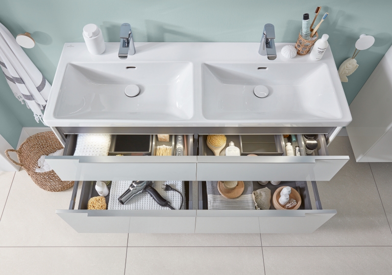 (epr) Im Badezimmer häuft sich im Laufe der Zeit ein ganzes Sammelsurium an Utensilien für die tägliche Beauty-Routine an. Kommen innovative Badmöbel von Villeroy & Boch zum Einsatz, lassen sich funktionale Finesse und ästhetisches Design in einer stilvollen Symbiose miteinander verbinden – für eine gut durchdachte Organisation, ein ordentliches Ambiente und einen optimierten Zeit- und Komfortfaktor.