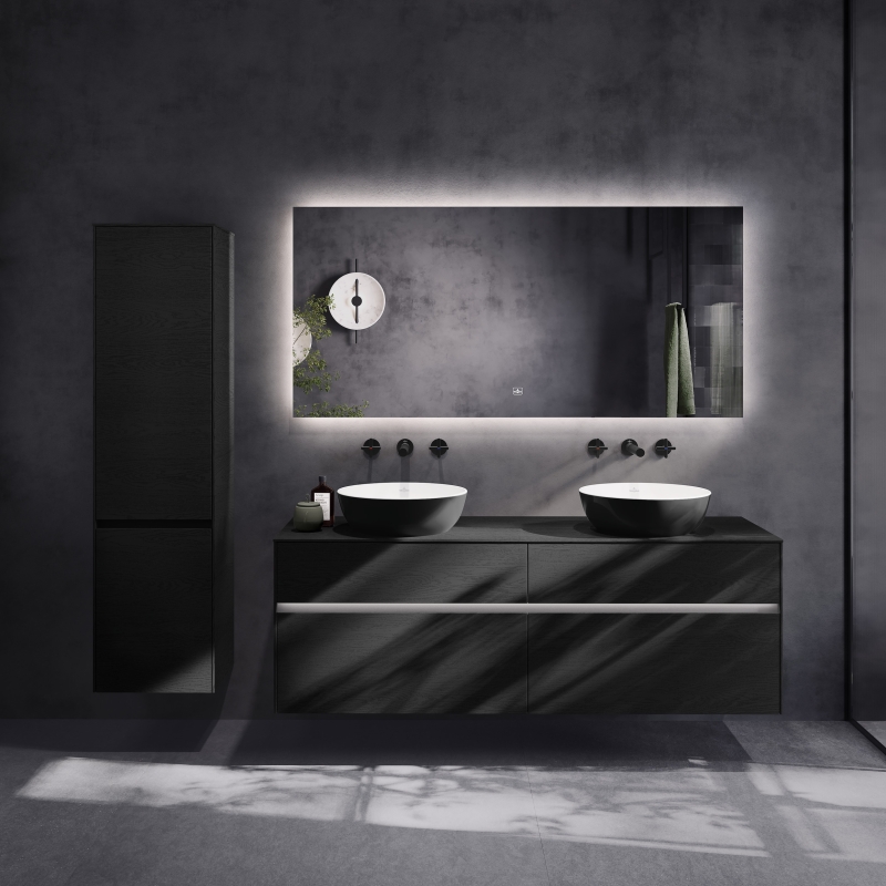 Ein perfekter Partner mit viel Stauraum ist die Kollektion Subway 3.0. Sie bietet eine große Auswahl an Badmöbeln in unterschiedlichen Größen mit Auszügen bis zu 51,6 cm Tiefe, die mit praktischen Einteilungselementen und einer optionalen Beleuchtung punkten. Ein Highlight ist das 1,70 m hohe Spiegelregal, das über ein seitliches Regalelement mit vier Fächern sowie eine Hängevorrichtung für Bademäntel oder Handtücher verfügt und dem Raum durch den frontseitig montierten Spiegel ein Plus an Weite verleiht. Auch die Kollektion Collaro macht mit ihrer puristischen Formsprache in jedem Bad eine top Figur. Die zeitlos-stilvolle Serie umfasst eine große Auswahl an Badmöbeln mit Vollauszug, die mit SoftClosing-Funktion zur Ruhe und Entspannung im privaten Wellnesstempel beitragen.