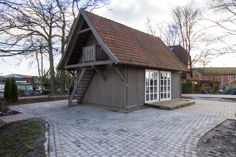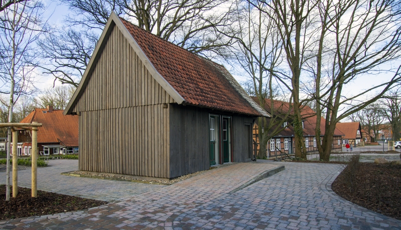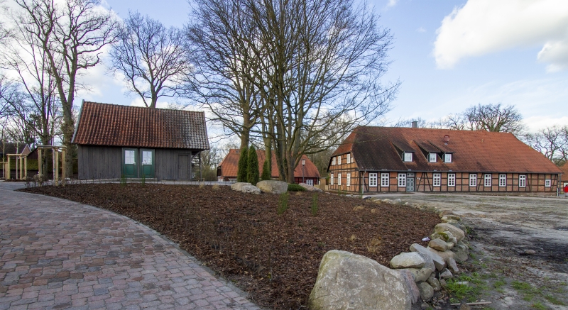 Nähert man sich dem neuen Trauhaus, fühlt man sich sofort in ein Fleckchen Heidewunderland versetzt. Denn der Speicher mit seiner rustikalen Optik ist jetzt integriert in eine Außenanlage, die eine Heide-typische Bepflanzung präsentiert und sich als idealer Ort für Hochzeitsgesellschaften anbietet, die auf ihr Brautpaar warten, um direkt nach der Trauung an Ort und Stelle auf das frische Glück anzustoßen.