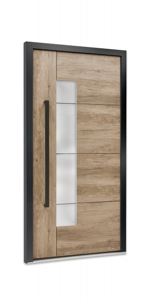 Damit das attraktive Äußere der Haustür lange Zeit erhalten bleibt, ist eine regelmäßige Pflege mit schützenden Ölen unerlässlich. Wer Holz liebt, den Pflegeaufwand jedoch gern auf ein Minimum reduzieren möchte, entscheidet sich für die Art Decor-Line Serie im angesagten Altholz-Style. Die Dekore erzeugen eine täuschend echte Holzoptik und sind in verschiedenen Farbtönen wie Monument Oak oder Desert Oak verfügbar. Getrennt werden die einzelnen Holzdekor-Elemente durch tiefschwarze V-Nuten, welche eine besondere Lebendigkeit und Tiefenwirkung erzeugen. Werden sie sowohl vertikal als auch horizontal eingesetzt und verlaufen somit in verschiedene Richtungen, lässt sich dieser Effekt zusätzlich verstärken. Erhältlich sind die Qualitäts-Haustürfüllungen im gut sortierten Fachhandel.