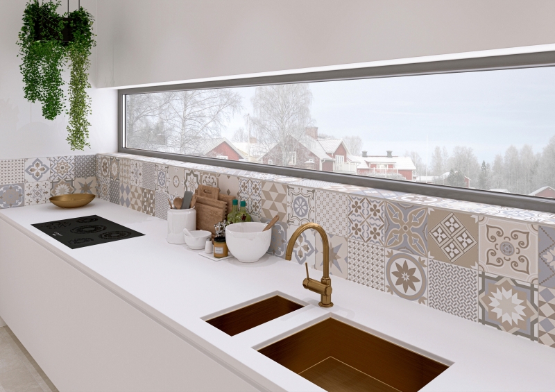 Ob auf dem Boden oder an der Wand: Fliesen werten jede Kücheneinrichtung auf und für jeden Wohnstil findet sich das passende Fliesendesign. Unter www.deutsche-fliese.de finden Bauherren und Sanierer dazu jede Menge Anregungen und Gestaltungsideen. Ornamentale Dekore oder die angesagten Mini-Riemchen im Brickdesign passen perfekt zu Landhausküchen, die seit Jahren ein Dauerbrenner in den Küchenstudios sind. Innovative Trendkonzepte mit schwarzen Küchenfronten oder dunklen Hölzern vertragen sich mit ebenso mit Beton-Optiken wie mit edlen Marmoranmutungen. Klassisch-repräsentatives Flair zaubert Terrazzo- oder Natursteinlook an Wand und Boden – und lässt sich mit unterschiedlichen Küchenstilen kombinieren, von der Holzküche über Hochglanzfronten bis zum Industrial-Look.