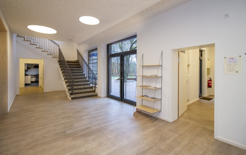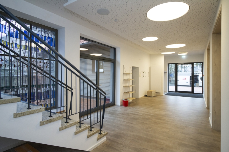 Das Ergebnis kann sich sehen lassen und ist mittlerweile feierlich eingeweiht. Entstanden ist ein Null-Emissions-Haus, das allen Anforderungen an Ressourcenschonung und Klimaschutz genügt – von der Verwendung nachhaltigen Dämmmaterials bis zur Haustechnik auf Höhe der Zeit. Auch hier hat es sich als positiver Faktor erwiesen, mit der Maßnahme gewartet zu haben. Denn während in einem früheren Planungsentwurf noch auf Gastechnik gesetzt wurde, sorgt nun eine moderne Wärmepumpe für behagliche Temperaturen. Und das sogar im heißen Sommer, denn durch das zusätzliche Kühlungsmodul kann die Wärme bei Bedarf um ein paar Grad gesenkt werden, was vor allem vulnerablen Gruppen zugute kommt, die sich im Laurentiushaus treffen.