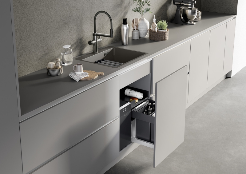 Da ein beachtlicher Teil des täglichen Abfalls in der Küche anfällt, ist ein modernes Mülltrennsystem unverzichtbar. Ob ergonomische Griffe, eine Halterung für Tütenclips, Deckel mit Aktivkohlefilter oder Deckel als Ablagemöglichkeit, beispielsweise für Batterien – jedes Detail dieses ausgeklügelten Systems ist durchdacht und erleichtert den Küchenalltag. Die Organisationsschublade bietet zusätzlichen Stauraum, etwa für Putzmittel, Müllbeutel oder Spülmaschinentabs. Mehr unter www.blanco.de.