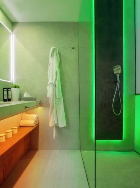 Die Möglichkeiten sind dabei so vielfältig wie Wohnideen, denn überall dort, wo besondere Lichtmomente entstehen sollen, lassen sich die LED-Module einsetzen. Durch die hohe Schutzklasse IP 67 eignen sich die Module auch für Feuchträume – selbst im direkten Spritzwasserbereich. Besonders praktisch: Eine beleuchtete Wandnische bietet eine praktische Abstellfläche für alle nötigen Utensilien und ist als vorkonfektioniertes Komplettset in verschiedenen Abmessungen erhältlich.