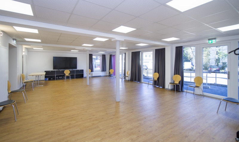 Die Planung und Realisierung der Modernisierungsmaßnahme übernahm das Architekturbüro BothmerHübner. Im Zentrum der Umgestaltung stand die Schaffung eines neuen Multifunktionsraums in drei ehemaligen Garagen, dessen Zugang über eine Rampe vollständig barrierefrei angelegt ist. Auf der zur Verfügung stehenden Fläche wurden neben diesem großzügigen Raum auch neue Sanitäranlagen – darunter eine behindertengerechte – und eine Teeküche realisiert.