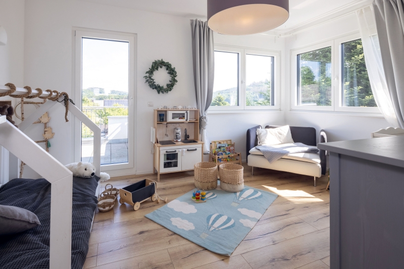 Viel Wohnkomfort: Alle Häuser des badischen Fertighausherstellers tragen das Zertifikat wohnmedizinisch empfohlen der Gesellschaft für Wohnhygiene, Baumedizin und Innenraumtoxikologie.