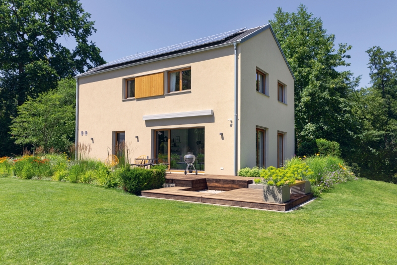 Die hohen Anforderungen an Klimaeffizienz lassen sich gut mit Holz als Baumaterial erfüllen. Für die Fertighäuser von WeberHaus beispielsweise wird Holz aus nachhaltiger Forstwirtschaft genutzt. Der nachwachsende Rohstoff speichert große Mengen CO2, gibt Sauerstoff ab und ist zudem ein hoch wärmedämmender Baustoff. Eine ökologische Gebäudehülle mit einer extra starken Holzfaserdämmplatte trägt daher zur besonderen Energieeffizienz der Fertighäuser bei. In Kombination mit Photovoltaik-Anlage, Batteriespeicher sowie Wärme- und Lüftungstechnik erhält man so ein Plusenergie-Haus, mit dem man mehr Energie erzeugt, als für Heizung und Warmwasseraufbereitung gebraucht wird. Mit einem Smarthome-System können die Bewohner zudem Stromverbraucher gezielt steuern, um den Energieverbrauch zu reduzieren. Beim badischen Fertighausspezialisten sind diese Komponenten bereits im Standard enthalten.