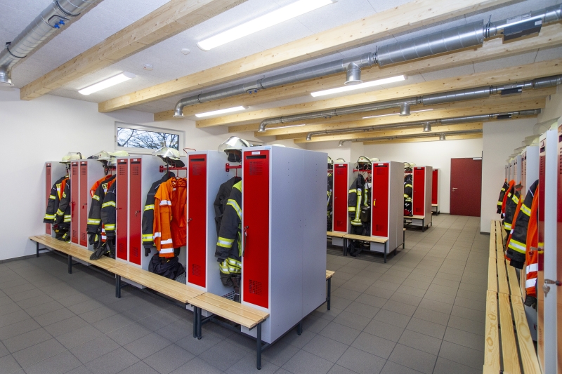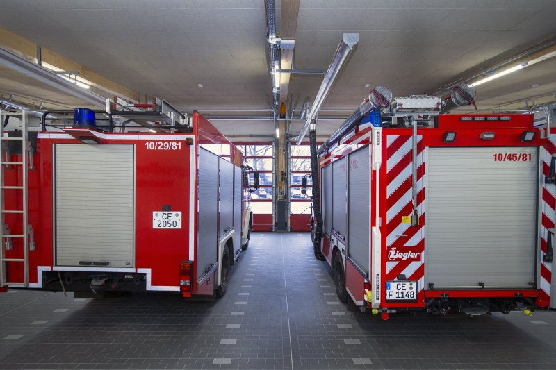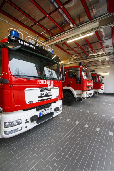 Wie glücklich das Team der Freiwilligen Feuerwehr Westercelle mit dem Neubau ist, lässt sich erst einschätzen, wenn man an die Bedingungen zurückdenkt, die im marode gewordenen alten Stützpunkt geherrscht haben. So hing beispielsweise die Einsatzkleidung in der Fahrzeughalle, und zwischen den Helmen und den Fahrzeugen gab es gerade mal 20 Zentimeter Abstand. Das Risiko eines Gedränges war hoch und damit eine wesentliche Vorgabe gefährdet. Denn mindestens so wichtig wie die erfolgreiche Bekämpfung von Bränden ist für die Feuerwehr die Sicherheit der eigenen Leute.