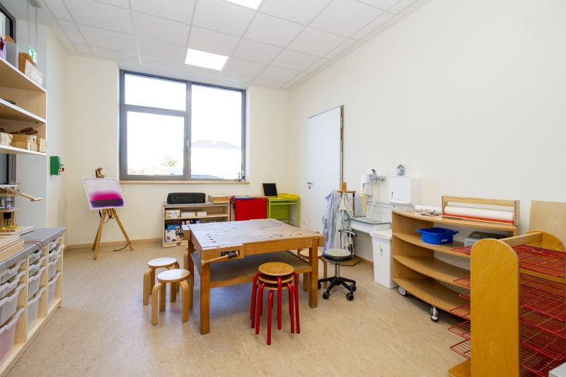 Doch nicht nur an die körperliche Bewegung ist hier gedacht, auch die geistige Beweglichkeit findet sich auf der Tagesordnung. Der Kunst- und Kreativraum bringt dafür alle Voraussetzungen mit, beispielsweise eine eigene Werkbank, an der sich erste handwerkliche Fähigkeiten erlernen und vertiefen lassen.