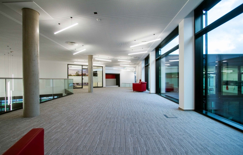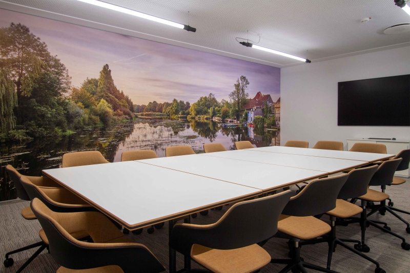 Der Baubeginn dieses anspruchsvollen Projekts fällt auf den 27. April 2021, knapp 17 Monate später konnten die neuen Räumlichkeiten am 19. September 2022 bezogen werden. Entstanden sind großzügige1.405 Quadratmeter Bürofläche in einem offenen Raumkonzept, das Besucherinnen und Besucher in heller, freundlicher Atmosphäre in Empfang nimmt.