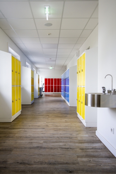 Im Erdgeschoss nahm man die Baumaßnahme zum Anlass, die Sanitäranlagen aufzustocken und so eine weitere Knappheit des früheren räumlichen Angebots zu beseitigen.