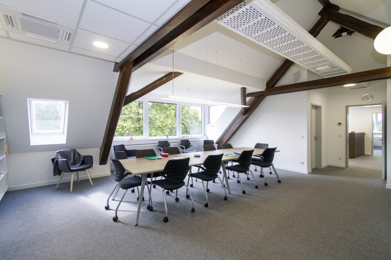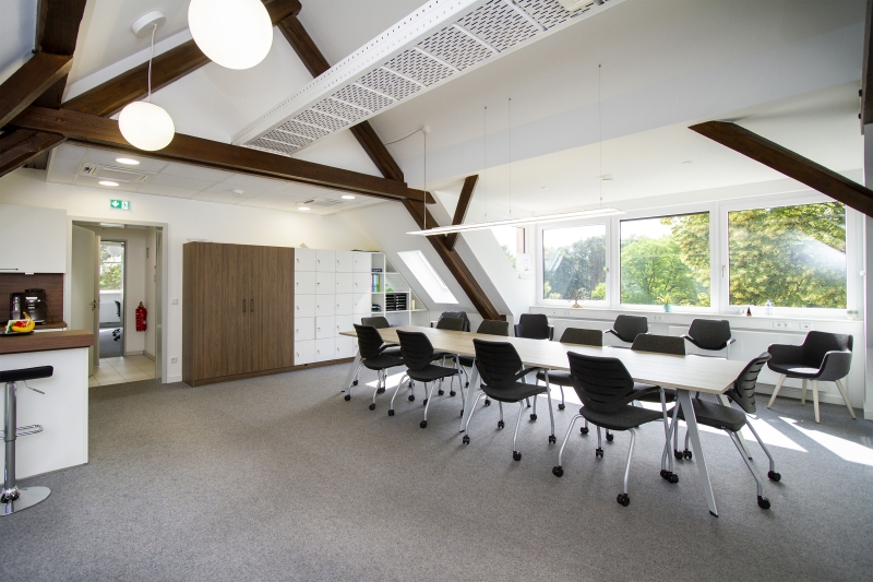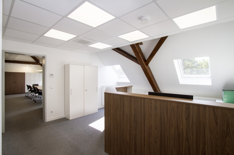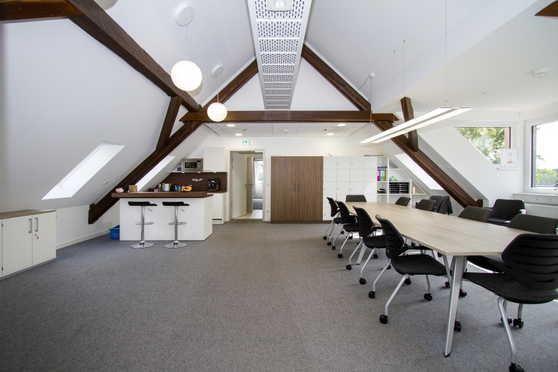 Auch das Dachgeschoss wurde durch die Umbaumaßnahmen zu neuem Leben erweckt, was schon damit beginnt, dass das Dach selbst energetisch saniert wurde, um aktuelle Ansprüche an die Wärmedämmung zu erfüllen. Die Etage ist für die Verwaltung ausgestaltet worden, in ihr finden sich das Rektorenbüro, das Lehrerzimmer und ein Vorbereitungsraum.
