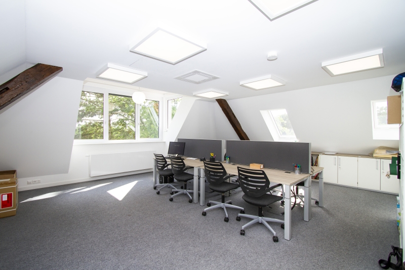 „Wenn man Flächen für eine Umnutzung umgestaltet, ist auch ein verantwortungsvoller Umgang mit der Statik ein wichtiger Faktor“, erklärt Christoph Jeßnitz, „in diesem Fall haben wir für Sicherheit gesorgt, indem wir vorrangig mit leichten Materialien wie zum Beispiel Trockenestrich gearbeitet haben. Lediglich die Treppen, von denen aus Brandschutzgründen zwei umgesetzt werden mussten, sind aus Ortbeton neu hergestellt worden.“