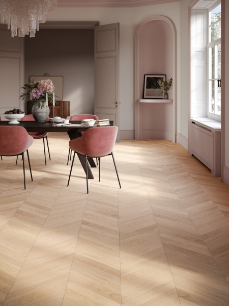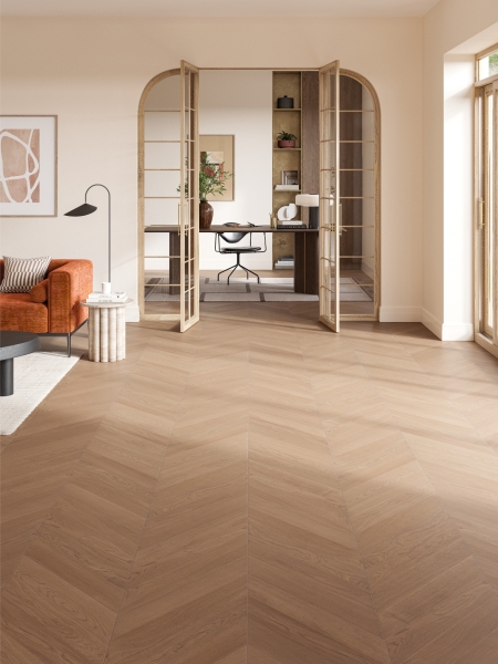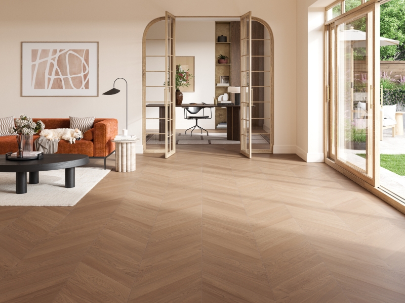Neue Parkett-Kollektion sorgt mit Chevron-Dielen für besonderen Flair im Wohnbereich