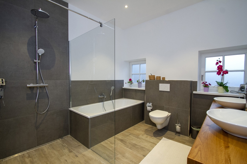 Denn hier wurde nach etwa einjähriger Bauzeit ein Motto verwirklicht, das wir uns von der Jahreszeit Frühling abgeschaut haben: Aus alt mach neu! Denn eines der traditionellen Gebäude, das einst Kühen und Pferden sowie Unmengen Heu und Stroh Platz geboten hat, wurde in Wohnraum verwandelt, der in jeglicher Beziehung zeitgemäße Ansprüche erfüllt.