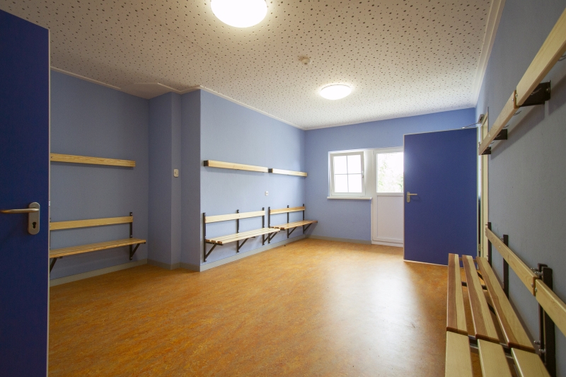 Im Innenbereich sind die Sanitär- und Umkleidebereiche erneuert worden. Neue Fliesen und frische Farben prägen das Erscheinungsbild und motivieren die Sporttreibenden mit ihrer freundlichen Ausstrahlung. Die Beleuchtung der Halle wurde komplett auf LED umgestellt, Präsenzmelder sorgen dafür, dass nur die Bereiche im Licht liegen, in denen auch Menschen unterwegs sind.