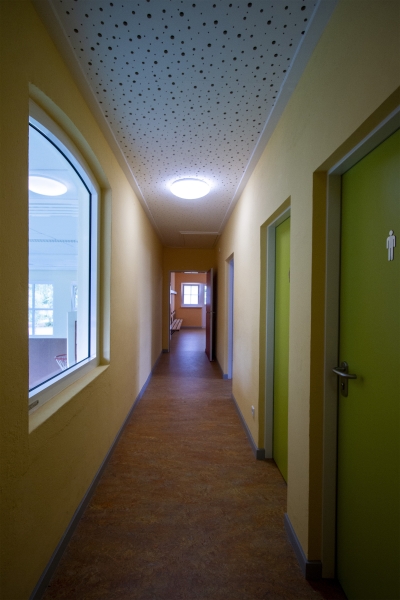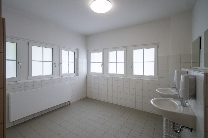 Auch die neuen Heizkörper mit Thermostatventilen und hydraulischem Abgleich tragen zur Senkung der Energiekosten bei und erweisen sich als passender Faktor in einem stimmigen Gesamtkonzept. Dieses umfasst übrigens auch das Upgrade der Sporthalle auf Barrierefreiheit: Eine automatische Tür ermöglicht den Zugang, ein neu geschaffenes, barrierefreies WC vervollständigt die Voraussetzungen einer inklusiven Sportstätte.