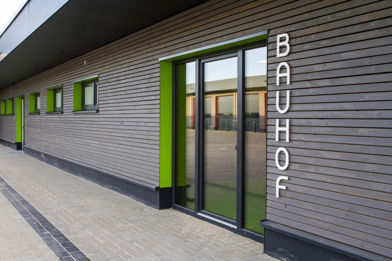 Die Gebäude sind sämtlich in Holzrahmenbauweise ausgeführt. Sowohl bei der Auswahl der beteiligten Gewerke als auch bei der Beschaffung des verbauten Holzes wurde auf regionale Verfügbarkeit geachtet. An den Fassaden wurde Lärchenholz als Rhombusverschalung eingesetzt. An den Innenwänden wurden OSB-Platten verbaut. Auch im Dachbereich blieb man dem Thema Holzbau treu: Die Dächer bestehen aus Brettsperrholzelementen. In der Zusammenfassung treffen wir bei den Gebäuden des Bauhofs auf eine schlanke, zeitgemäße Holzbauweise, die konsequent auf die Anforderung des maximal effizienten Einsatzes öffentlicher Mittel ausgerichtet ist.