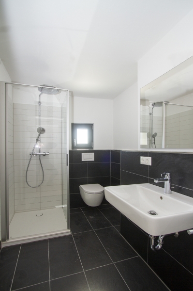 Die Sanierung betraf auch die Wohnungen selbst. Die Grundrisse wurden optimiert, die räumliche Aufteilung neugestaltet. Eine attraktive Aufwertung erfuhren die Zugänge zu den Balkonen. Die zuvor bestehenden Brüstungen wurden entfernt und stattdessen bodentiefe, verglaste Schiebetürelemente eingebaut. Zudem wurde das komplette Gas-, Wasser- und Stromleitungsnetz modernisiert.