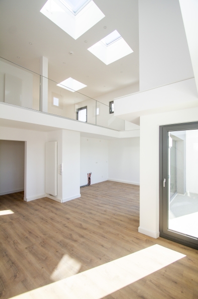 Ebenfalls auf der Aufgabenliste stand die Erneuerung des leicht geneigten Pultdaches, das in seiner aktualisierten Version mit Oberlichtern versehen wurde, die Tageslicht ins Haus strömen lassen und für eine helle, freundliche Atmosphäre sorgen. Außerdem wurden sämtliche Fenster ausgetauscht und durch energieeffizientere Varianten ersetzt.