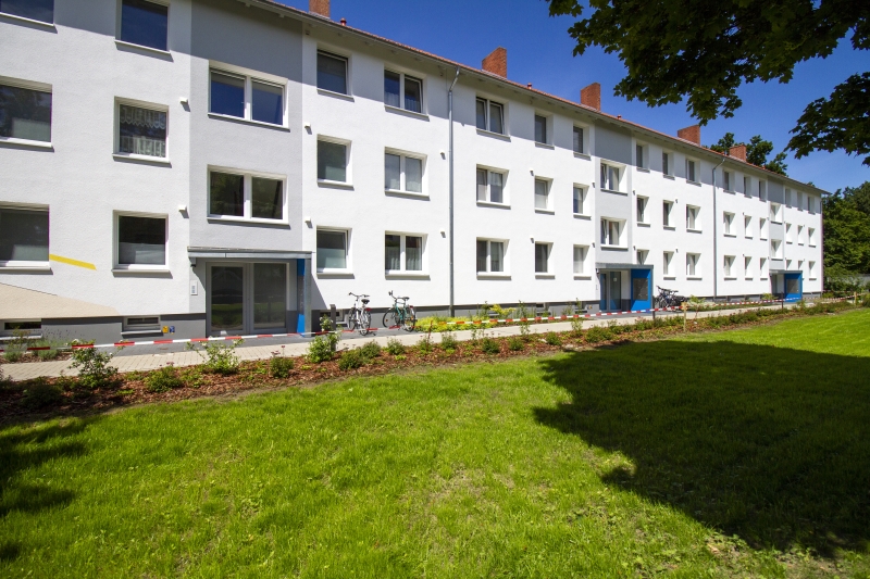 Die Vollsanierung der beiden Wohnriegel wurde unter normaler Bewohnung durchgeführt, die Mieterinnen und Mieter hatten also mit ihrem Verständnis für zeitweilige Einschränkungen einen erheblichen Anteil am Erfolg der Maßnahme. Als Vorteil erwies sich die Chance, mit dem Objekt in der Rostocker Straße 2-6 den idealen Plan einmal durchspielen zu können, bevor man ihn dann in der Hausnummer 41a-b als gelungene Blaupause erneut umsetzen konnte.