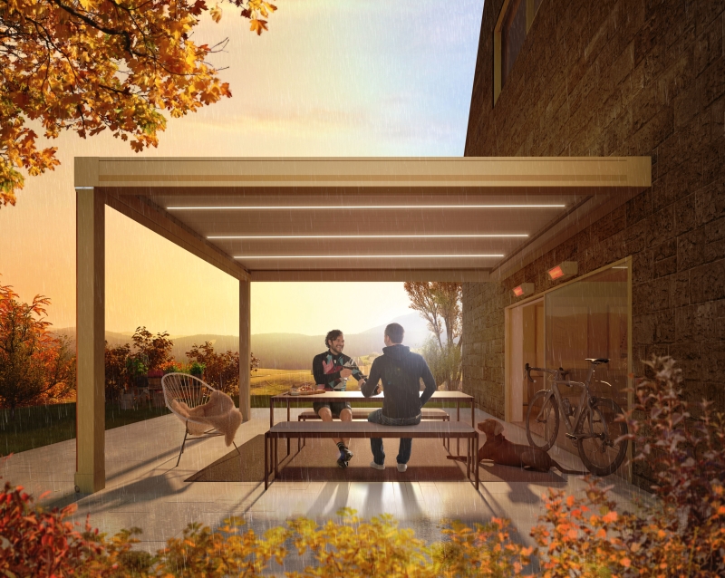 Für Rundumschutz gegen starke Sonneneinstrahlung oder auch Zugluft bieten sich Zusatzausstattungen mit Vertikalbeschattungen an. Optisch attraktiv gestalten lassen sie sich, wenn sie unauffällig im Rahmen des Dachs integriert sind. So machen sich die Seitenbeschattungen nahezu unsichtbar, wenn sie eingefahren sind. Unter www.weinor.de/artares gibt es weitere Infos zum Thema Lamellendach. Hohen Bedienkomfort bieten neben der Fernsteuerung, mit der sich die Lamellenneigung ganz nach persönlichen Vorlieben einstellen lässt, auch Wettersensoren mit automatischem Sonnen-, Wind-, Regen- und Frostschutz. Sie wachen vollautomatisch über die aktuelle Wetterlage und steuern das Dach entsprechend. Wer sich noch mehr Komfort für den Abend wünscht, integriert zusätzlich LED-Lichtleisten und Heizstrahler.