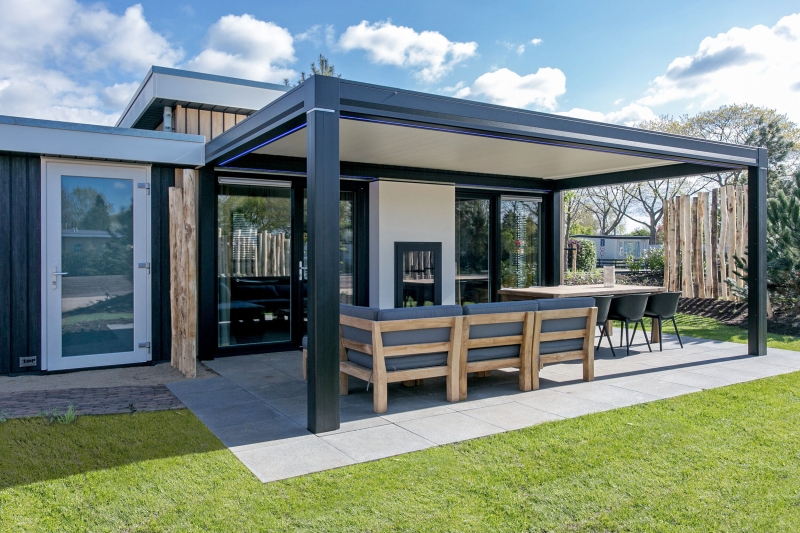 Mit senkrechten Verschattungen lässt sich ein Lamellendach rundum schützen.