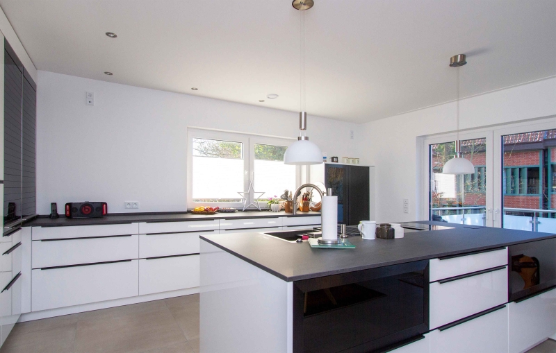 Vom Theater kennt man die Regel, dass die Generalprobe misslingen muss, damit die Premiere gut klappt. Ähnlich ging die Geschichte bei diesem Bauvorhaben, denn sie begann mit dem Nachweis von Schadstoffbelastungen im Boden und der Notwendigkeit, die gesamte Fläche 1,20 Meter tief abzutragen und wieder aufzuschütten. Dafür lief es dann reibungslos – und das Ergebnis macht sogar ein bisschen stolz: „Es ging uns hier auch darum, mal zu zeigen, was entsteht, wenn man konsequent auf beste Lösungen setzt“, freut sich Detlef Fritsche, „und als wir das fertige Haus zum ersten Mal betreten haben, wussten wir sofort: Der Plan ist aufgegangen!“