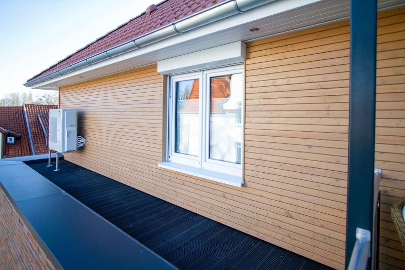 Doch auch aus Sicht der Bauherren ist hier ein Objekt umgesetzt worden, bei dem ohne Rücksicht auf Kompromisse die maximale Qualität im Vordergrund stand. Und das sieht man schon auf den ersten Blick, denn das zweigeschossige Gebäude passt sich mit seiner Fassadenoptik aus Klinkerstein und Holz harmonisch ins Umfeld ein, ohne dabei seine architektonische Eigenständigkeit aufzugeben (Entwurf: 3raum Architekten, Celle).