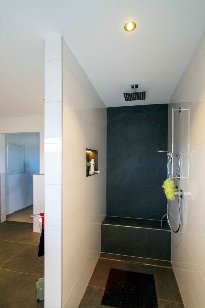 Doch das neue Gebäude überzeugt nicht nur mit seinem äußeren Erscheinungsbild – auch die „inneren Werte“ sind beeindruckend. Haustechnisch wurde hier eine Kombination von haustechnischen elementen realisiert, die der Immobilie Vorbildcharakter verleihen: von der automatischen Be- und Entlüftung und der Klimaanlage bis zur Nutzung von Erdwärme und Photovoltaik mit Speicher-Akku vor Ort ist hier ein Maximum an Nachhaltigkeit und Energieeffizienz entstanden, das sich konkret beziffern lässt. Das Gebäude verwöhnt seine Bewohnerinnen und Bewohner mit der Klasse KfW 40.