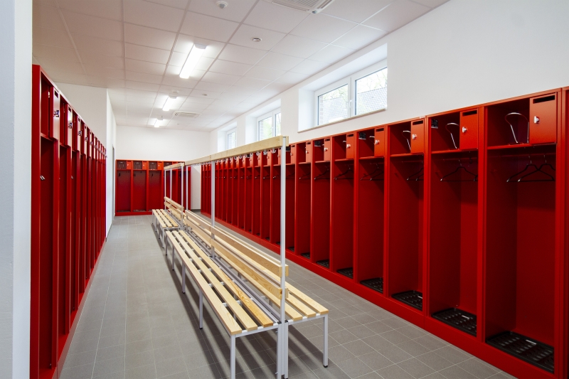 Das beginnt schon mit der neuen Halle, die über zwei Stellplätze verfügt und die Fahrzeuge mit ausreichendem Spielraum aufnimmt. Eine weitere wesentliche Verbesserung liegt in der Trennung des Schwarz- und Weißbereichs. Damit werden die Flächen bezeichnet, die mit gebrauchter, verschmutzter Dienstkleidung (schwarz: Halle, Werkstatt) und in sauberer Privatkleidung (weiß: Umkleide, Sanitärbereich, Räume der Wache) betreten werden. Zum schwarzen Bereich zählen also zum Beispiel die Sanitäranlagen, während ein spezieller Trocknungsraum für die gebrauchte Kleidung den Übergang in die weißen Areale bildet.