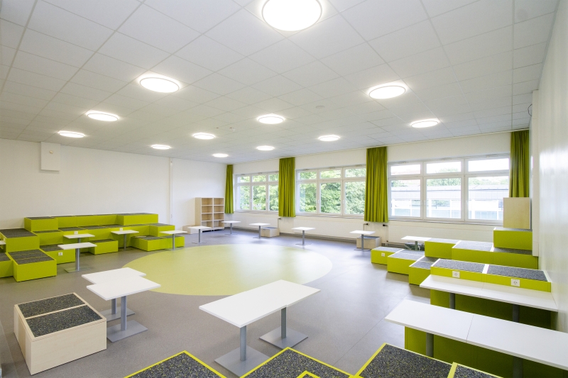 Im zweiten Bauabschnitt zeigte sich dann aber, dass es Faktoren gibt, die sich der fachlichen Planung entziehen und trotzdem erheblichen Einfluss auf die Realisierung von Maßnahmen haben können. Denn in die Sanierung des Altbaus fiel die Corona-Pandemie, in deren Gefolge es zu Lieferengpässen und signifikanten Baukostensteigerungen kam. Es bleibt ein Verdienst aller an der Planung, der Leitung und am Bau Beteiligter, sich durch diese Herausforderungen nicht aus der Bahn werfen zu lassen, sondern hartnäckig am Projekt zu bleiben, das zu den Sommerferien 2023 zu einem glücklichen Abschluss gebracht werden konnte.