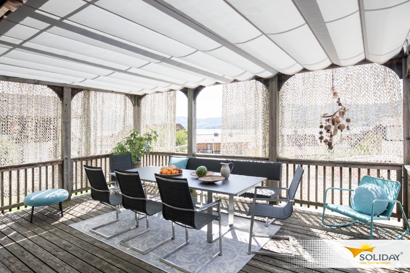 Auch in Sachen Montage zeigen sich die raffbaren Schattenspender flexibel: Ob zwischen Hauswänden, auf Dachterrassen, unter Balken, Pergolen oder Glasdächern – die Systeme passen sich den architektonischen Gegebenheiten an und überspannen je nach Variante Flächen bis zu 100 m2 mit spielerischer Leichtigkeit. Dank ihrer High-End Technik aus dem Segelsport überzeugen die Anlagen dabei nicht nur durch Leichtgängigkeit, sondern auch durch Stabilität und Langlebigkeit. Abgerundet wird das Ganze durch eine große Auswahl an Farben und Premium-Stoffen, die jedem Outdoor-Hotspot einen hochindividuellen Touch verpasst. Komfortabler Wetterschutz mit Stil? Alle Infos zu den raffbaren Sonnensegeln gibt’s beim SOLIDAY Fachpartner oder unter www.soliday.eu.
