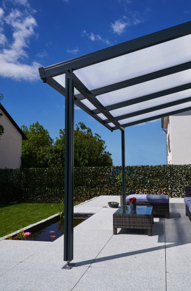 Die hochwertigen Hohlkammerplatten verbinden effektiven Wetterschutz mit optischer Finesse und verschmelzen damit Design und Funktion zu einer gelungenen Symbiose. Die opalen Streifen – wahlweise in Anthrazit oder Weiß – spenden Sonnen- und Blendschutz, gleichzeitig lassen die durchsichtigen Streifen jedoch ausreichend Licht hindurch, damit auf der Terrasse niemand im Dunkeln sitzen muss. Sie besitzen einen beidseitigen UV-Schutz, sehr gute Dämmeigenschaften, sind auch als Sicht- und Windschutz verwendbar und sogar als praktischer Bausatz in zwei Größen erhältlich! Da auch Wetterextreme wie Starkregen oder heftige Hagelschauer heutzutage keine Seltenheit mehr sind, muss sich das Terrassendach vielerorts zudem in funktionaler Hinsicht überzeugend positionieren.
